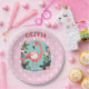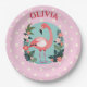 Plato De Papel Flamingo floral rosa Personalizado con puntos de p