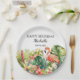 Plato De Papel Flamingo Floral Tropical Nombre de cumpleaños feli