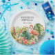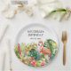 Plato De Papel Flamingo Floral Tropical Nombre de cumpleaños feli