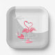 Un par de flamencos rosas con cuello curvado forman un corazón parado en el mar en una playa iluminada por la luna. Un diseño romántico de inspiración media siglo con un toque retro creado en una combinación de colores rosa, gris y blanco con un fondo de cambio de color. Un diseño de personalizable para que puedas personalizar con tu propio texto, imágenes e ideas. Imagen original de arte digital.