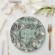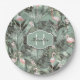 Este plato de papel presenta un magnífico patrón de flamencos rodeados de abundantes follajes tropicales y orquídeas en verde sabio y rosa rubor. Se ha proporcionado una etiqueta que contiene su nombre y su monograma u otro texto. Busque ID868 para ver otros productos con este patrón tropical fresco.