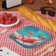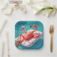 Plato De Papel Flamingo Relaxing On a Pool Mattress