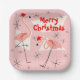 Diseño festivo inspirado en el siglo XX con flamencos rosados con sombreros Santa, formas geométricas crema y estrellas con un fondo rosa (cambio de color). Un diseño de personalizable para que puedas personalizar con tu propio texto, imágenes e ideas. Imagen original de arte digital creada por QuirkyChic.