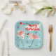 Plato De Papel Flamingo Santas Blue Merry Christmas square
