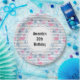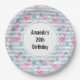 Placas de papel de cumpleaños con un patrón con un divertido ambiente veraniego. Flamencos rosados y piñas puestas en un patrón de rayas azul claro con hojas y corazones alrededor.
