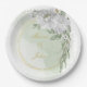 Plato De Papel flor blanca hojas verde oro wreth sage verde