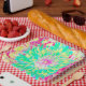 Este original cuadro digital de aceite de My Rubio Garden presenta una flor de color amarillo y magenta Dahlia con acentos morados, acuáticos, artreuse y verde limón. El resultado es un cuadro florido y colorido que te encantará.