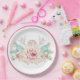 Un bonito plato de fiesta de papel que se puede usar para cualquier ocasión. Patrón de una acuarela Cactus Flower en el centro de un anillo de color rosa. Colóquelas sobre un fondo blanco o cambie a un color pastel para que se adapte a tu estilo. También encontrará servilletas de papel para cada diseño de placa de papel.