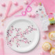 ¡Disponibles vasos de papel y servilletas de papel a juego! Lindas flores de cerezo rosadas sobre fondo blanco.