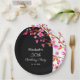 Elegante flor de flores de cerezo y marco de arco negro con tipografía vibrante en un plato de papel de fondo blanco. Se puede personalizar todo el texto.