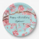 Plato De Papel Flor de cerezo Sakura Pink Turquoise Cumpleaños