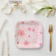 Estas placas de papel presentan un diseño floral atrevido y divertido, con flores en flor en melocotones pálidos y brillantes y rosados sobre un fondo melocotón pálido.