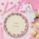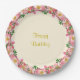 Plato De Papel Flor rosa Garland en Marfil Feliz cumpleaños