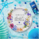 Flores violetas, azules y rojas crean un marco de bonito. La caligrafía añade un toque elegante y femenino. El corazón morado le da un toque de romanticismo agradable.