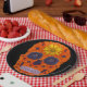 Mi cráneo del Día de los Muertos es un collage de algunas pinturas de mi flor, que muestra la amapola escarlata naranja.