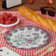 Este elegante plato de papel presenta un diseño floral de estilo chinoiserie muy detallado, con flores vibrantes, ramas delicadas y motivos botánicos complicados. El borde de vieiras rojo profundo se acentúa con el filigree negro, creando un contraste sorprendente frente a la intrincada pieza central floral. Inspirado en la porcelana antigua, este diseño es perfecto para fiestas de té, reuniones elegantes o para añadir un toque atemporal a la mesa.