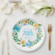 Plato De Papel Floral azul bonito y amarillo 70 cumpleaños
