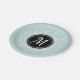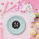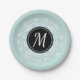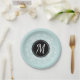 Platos de papel románticos con flor azul de menta y monograma personalizado.
