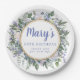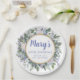 Plato De Papel Floral Blanca Azul 60 cumpleaños