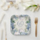 Platos de papel fiesta de las mujeres de 60 años (o de cualquier edad) con flores de color azul y blanco. Personalizado con el nombre y la edad del invitado de honor. Comuníquese conmigo para obtener ayuda con sus personalizaciones o para solicitar productos adicionales de correspondencias o coordinación de Zazzle para su fiesta.