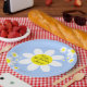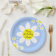Plato De Papel Floral blanca y azul claro lindo quinto cumpleaños