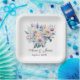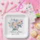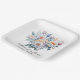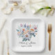 Un elegante plato de papel cuadrado floral blanco para cena de ensayo, o ducha de boda