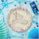 This easter plate deign has a watercolor cross with cute lamb adorned in flowers and text that says "Happy Easter." Colors used include olive green, pink, cream, yellow and brown. All text is editable to meet the needs of your event.