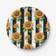 Plato De Papel Floral de girasol franjas blancas negras
