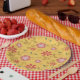 Los elementos florales ilustrados a mano dan a estos platos amarillos brillantes una sensación vintage divertida. Encuentra artículos coincidentes en mi tienda.