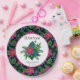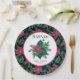 Plato De Papel Floral Rosa Caliente sobre Negro