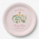 Plato De Papel Floral rosa con bautismo cruzado de oro