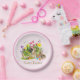 Plato de papel floral rosa conejito de Pascua jard