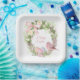 Plato De Papel Floral rosa Wreath feliz Pascua