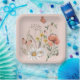 Plato De Papel Floral Silvestre Cuadrado Rosa Melocotón Rubor
