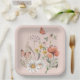 Plato De Papel Floral Silvestre de Cuadrado de Melocotón Rosa Son