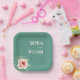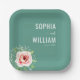 Este elegante plato de boda presenta un diseño minimalista con un fondo azul verdoso sólido, creando una atmósfera serena y sofisticada. El diseño incluye una gran rosa rosa rodeada de delicadas flores blancas en la esquina inferior izquierda, lo que añade un toque de belleza natural. El texto centrado en fuentes limpias y modernas resalta los nombres y la fecha, lo que garantiza la legibilidad en el vibrante fondo. Perfecto para celebrar momentos especiales, este diseño combina el estilo contemporáneo con un encanto atemporal, lo que lo convierte en una opción ideal para bodas o eventos formales.
