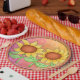 Plato De Papel Flores amarillas texturizadas con flor verde rosa