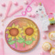 Disfrute de un fiesta u otro evento con coloridos platos fiestas de papel de girasol. Los girasoles tienen contornos negros para añadir textura. El fondo texturado es de color rosa oscuro a diagonal verde a través del diseño. Los girasoles blancos tienen grandes centros de flores marrones. El borde tiene líneas negras onduladas para formar un borde al lado de un borde exterior sólido de color marrón. Coordine con otros productos como las servilletas con este diseño para tener un evento que destaca. El arte original es de Phyllis Dobbs.