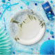 Plato De Papel Flores azul boho hojas verdes botánicas