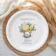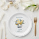 Pequeña taza de té con flores azules y amarillas en primavera o en verano platos de papel de 100 años. Comuníquese conmigo para obtener ayuda con sus personalizaciones o para solicitar productos adicionales de correspondencias o coordinación de Zazzle para su fiesta.