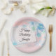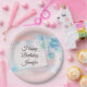 Plato De Papel Flores azules de bonito en el cumpleaños de fondo