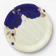 Plato De Papel flores azules reales hojas de oro mármol