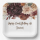 Plato De Papel Flores Beige Marrón Fiesta Floral