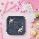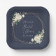 Añada un toque personal a su celebración de la ducha de novia con estos artículos de fiesta elegantes y memorables. El diseño está decorado con flores de acuarela blanca, vegetación y marco dorado sobre un fondo azul marino.