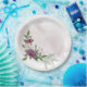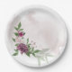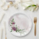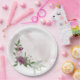 Hermosa malva rosa y flores blancas y hojas verdes placa de papel boda botánico