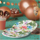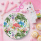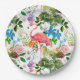 Plato De Papel Flores blancas, pájaros, flamingo, abejas,