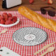 Plato De Papel Flores blancas y negras con rayas