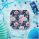 Plato De Papel Flores blancas y rosas sobre azul oscuro.