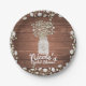 Platos de Flores de Aliento de Bebé y Madera Elegante Fiesta Rústica. Personalice con cualquier texto para cualquier evento.