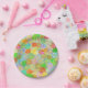 Plato De Papel Flores de aster y cone y hojas tropicales acuarela